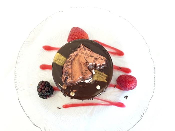 Guest judges for the fashion contest (including myself, Britt & Gretchen Hackmann from Nubry.com and Fox 5 News reporter Heather Lake) met for lunch in Il Palio restaurant in Del Mar’s Turf Club. My dessert was sinfully delicious, just the way I like it! A little hockey puck of chocolate goodness (see image below). If you missed opening day don’t fret, Bing Crosby season is happening until November 30th. For more info, visit online at https://www.dmtc.com/ .
